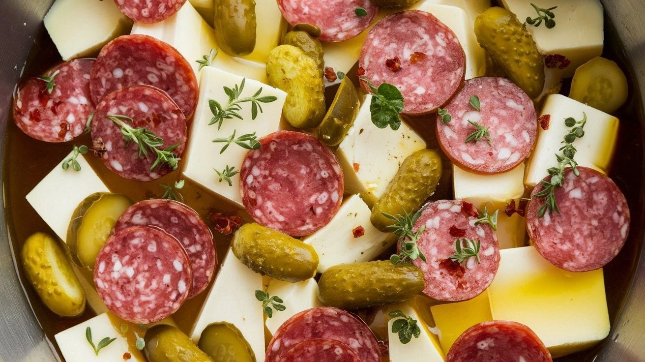 Fast forward to today, and this version has evolved into the definitive marinated cheese appetizer that you can’t find in any cookbook. The secret lies in the balance of textures: a creamy cheese that gently melts, a crisp pickle that adds a bright crunch, and a savory salami that offers a smoky undertone. The finish is a glossy glaze that makes the cheese look almost edible, yet it remains firm enough to bite into. The flavor profile is a harmonious dance of salty, tangy, and aromatic notes that leave a lingering aftertaste. I swear, if you haven’t tried this yet, you’re missing out on a culinary experience that will become your go‑to party trick.
