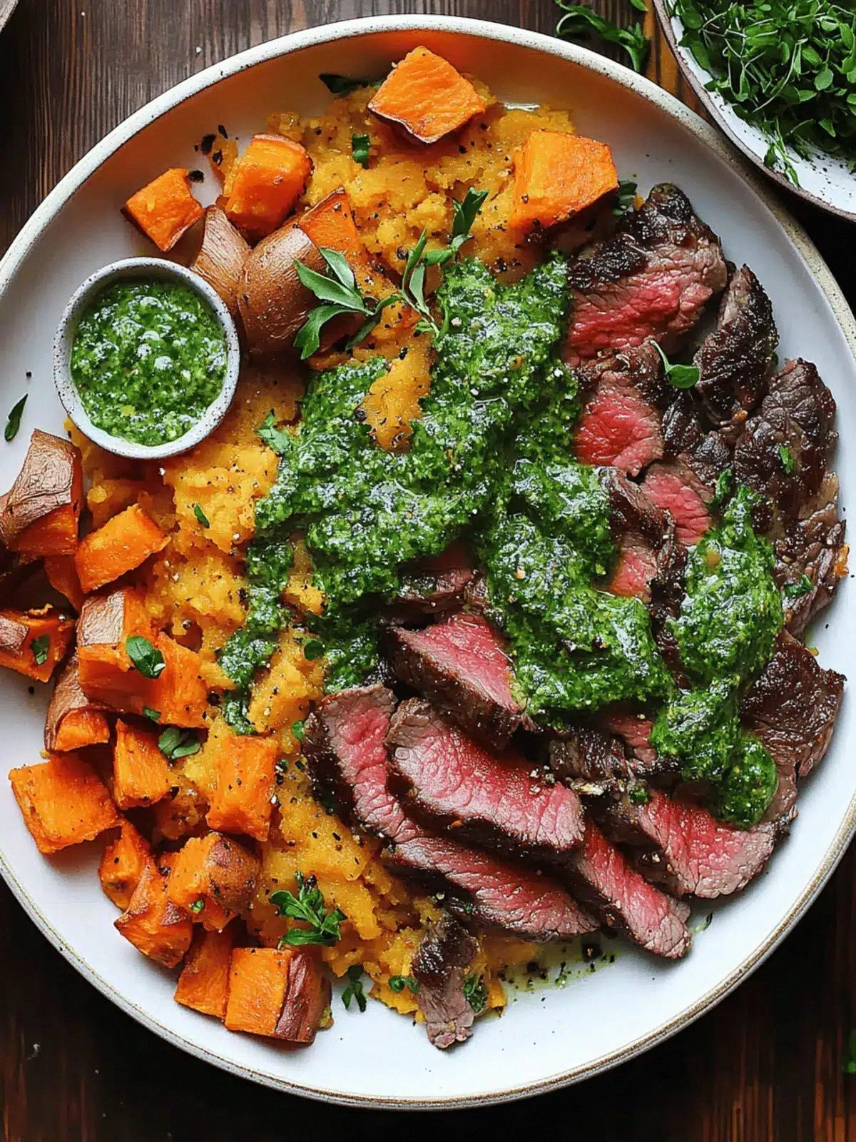 - Flavor: The green sauce marries basil, cilantro, and a touch of balsamic vinegar to create a tangy, herbaceous profile that cuts through the richness of the steak and sweet potatoes.